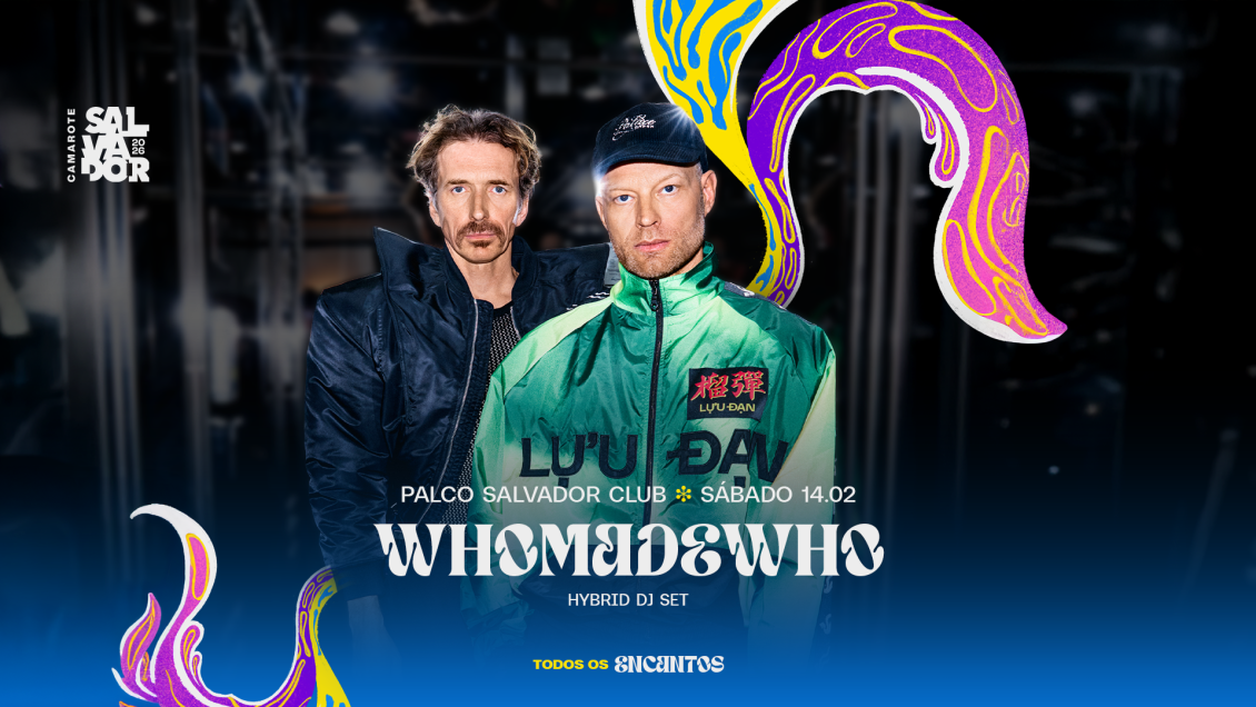 Direto da Dinamarca para o Camarote Salvador, o trio WhoMadeWho vai estrear no palco Salvador Club no sábado de Carnaval, dia 14 de fevereiro. Formado por Tomas Hoeffding, Tomas Barfod e Jeppe Kjellberg, o grupo conquistou o público com sua sonoridade única, reunindo influências do rock e jazz em produções eletrônicas. Eles se consagraram no formato Hybrid DJ Set, que une discotecagem tradicional a performances ao vivo com vocais e instrumentos.